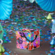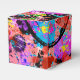 If colour energises you like it does me, then these favour boxes are for you. Covered with a digital graffiti that I designed, it has shades of coral, orange, lavender, purple, turquoise, midnight blue, white, yellow, lime green, pink, black and more. The layers of colours and varying opacity make for fun favour boxes.