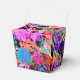 If colour energises you like it does me, then these favour boxes are for you. Covered with a digital graffiti that I designed, it has shades of coral, orange, lavender, purple, turquoise, midnight blue, white, yellow, lime green, pink, black and more. The layers of colours and varying opacity make for fun favour boxes.