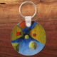3 dimensional vibrant painting made into a keychain ,using geometric shapes.