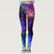 This beautiful pair of leggings has a spectacular colorful galaxy nebula pattern with stars in shades of blue, purple, turquoise and pink.