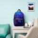 This fun kids backpack design features a watercolor illustration of deep outer space in shades of dark blue, purple, and cyan. You can customise it with your child's name on the front. If you prefer not to include a name, then simply delete that text. It's a cool modern design for kids and even adults!