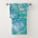 A stunning addition to any bathroom. This set includes a bath towel and a hand towel, both made from soft, absorbent cotton. The towels feature a mesmerising galaxy design with shades of blue and green, giving a luxurious and calming feel.