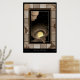 Art Deco tile-bordered inset graphic with glowing orb, reclining female in swirled fabric being watched over by a great-face above set in a starry sky.