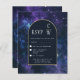 Galaxy Starry Night Purple Blue Gold Wedding RSVP