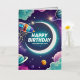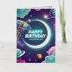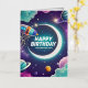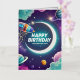 Galaxy-themed happy birthday crescent moon, stars foil greeting card
