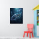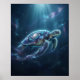 A serene galaxy turtle glides gracefully through a tranquil cosmic ocean, its shell swirling with intricate nebula patterns and glowing star systems. Trails of soft light follow its gentle motion, creating a peaceful and meditative atmosphere. Surrounded by deep space currents, floating particles, and distant luminous formations, the scene blends ocean calm with celestial wonder. This artwork radiates balance, wisdom, and tranquility, making it perfect for relaxing interiors, wellness spaces, or modern wall decor with a cosmic touch.