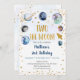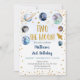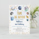 Galaxy Two The Moon Blue Gold Outer Space Birthday Invitation