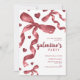 Valentine's day party Invitation with watercolor red coquette bows and Hearts.