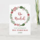 Green and red Christmas holiday wreath holiday card, with the words Merry Christmas in Galician: Bo Nadal.