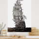 Galleon's pen and ink drawing in black and white poster