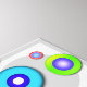A Rainbow of Colourful Circles against a multi-toned grey circle background give this design a retro, sixties inspired Pop Art look but in a contemporary style. Fully customisable and set up so you can personalise to make it your own.