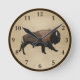 Galloping Bison On Old Paper Round Clock