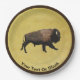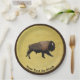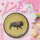 A digital painting of the American bison, or buffalo, superimposed on a brain-tan leather background image. Customise by adding your own text.