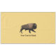 A digital painting of the American bison, or buffalo, superimposed on a background colour suggesting brain-tanned leather. You may choose another background colour. Add your own text. The bison (Bison bison), the largest land mammal in North America, is considered a keystone species: they once roamed the continent in great herds, and their grazing pressure helped shape the ecology of the Great Plains. Two subspecies or ecotypes have been described: the plains bison (Bison bison bison), smaller in size and with a more rounded hump, and the wood bison (Bison bison athabascae) – the larger of the two and having a taller, square hump. The  bison is a relative newcomer to North America, having originated in Eurasia and migrated over the Bering Strait About 10,000 years ago it replaced the steppe bison (Bison priscus), a previous immigrant that was much larger. It is thought that the steppe bison became extinct due to a changing ecosystem and hunting pressure following the development of the Clovis point and related technology, and improved hunting skills. During this same period, other megafauna vanished and were replaced to some degree by immigrant Eurasian animals that were better adapted to predatory humans. The extant bison, technically a dwarf form, was one of these animals. There were once an estimated  20-30 million bison, also referred to as buffalo, roaming North America. Their range once roughly comprised a triangle between the Great Bear Lake in Canada's far northwest, south to the Mexican states of Durango and Nuevo León, and east along the western boundary of the Appalachian Mountains. The first thoroughfares of North America, except for the time-obliterated paths of mastodon or musko, were the traces made by bison and deer in seasonal migration and between feeding grounds and salt licks. Many of these routes, hammered by countless hoofs instinctively following watersheds and the crests of ridges in avoidance of lower places' summer muck and winter snowdrifts, were followed by Native Americans and were invaluable to explorers.. The term "buffalo" may be considered a misnomer for this animal, as it is only distantly related to either of the two "true buffalo," the Asian water buffalo and the African buffalo. However, "bison" is a Greek word meaning ox-like animal, while "buffalo" originated with the French fur trappers who called these massive beasts bœufs, meaning ox or bullock – so both names, "bison" and "buffalo," have a similar meaning. In reference to this animal, the term "buffalo," which dates to 1635, has a much longer history than the term "bison," which was first recorded in 1774.The American bison is more closely related to the wisent or European bison. Unregulated shooting of bison, which culminated in mass slaughters during the 1870s, reduced the population to 1,091 in 1889. Today, approximately 500,000 bison live across North America. Most are not pure bison but rather have been cross-bred with cattle in the past and are raised as livestock on ranches. Fewer than 30,000 bison are in conservation herds, and fewer than 5,000 are free-ranging and disease-free. Today bison are ecologically extinct throughout most of their historic range, except for a few national parks and other small wildlife areas. Yellowstone National Park has the largest population of free-roaming plains bison (about 4,000), and Wood Buffalo National Park has the largest population of free-roaming wood bison (about 10,000). A bison has a shaggy, long, dark brown winter coat, and a lighter weight, lighter brown summer coat. The winter coat is so thick and well insulated that snow can cover its backs without melting. Male bison are slightly larger than females. Plains bison typically weigh  from 700 to 2,200 lbs. The heaviest wild bull ever recorded weighed 2,800 lbs. When raised in captivity and farmed for meat, the bison can grow unnaturally heavy and the largest semi-domestic bison weighed 3,800 lbs. The heads and forequarters are massive, and both sexes have short, curved horns that can grow up to 2 feet  long, which they use in fighting for status within the herd and for defence. Bison are herbivores, grazing on the grasses and sedges of the North American prairies. Their daily schedule involves two-hour periods of grazing, resting and cud chewing, then moving to a new location to graze again. This regular motion ensures that bison seldom overgraze an area.  Bison often rub and roll on the ground creating shallow, saucer-like depressions called wallows.  Bison roll in wallow, wet or dry, covering themselves with dust or mud. Past explanations and current hypotheses suggested for wallowing behaviour include grooming behaviour associated with shedding, male-male interaction (typically rutting behaviour), social behaviour for group cohesion, play behaviour, relief from skin irritation due to biting insects; reduction of ticks and lice; and thermoregulation. Wallows were once a common feature of the plains. In winter, bison can dig through deep snow with their heads to reach the vegetation below. Bison have poor eyesight, but have acute hearing and an excellent sense of smell. Bison can reach speeds of up to 35 mph. Bison have a life expectancy of approximately 15 years in the wild and up to 25 years in captivity. Bison mate in late spring and summer in more open plain areas. During fall and winter, bison tend to gather in more wooded areas. During this time, bison partake in horning behaviours. They will rub their horns against trees, young saplings and even telephone poles. Aromatic trees like cedars and pine seem to be preferred. Horning appears to be associated with insect defence as it occurs most often in the fall when the insect population is at its highest. Cedar and pines emit an aroma after bison horn them and this seems to be used as a deterrent for insects. While often secure from predation due to their size and strength, in some areas, bison are regularly predated by wolves. Wolf p
