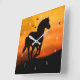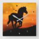Galloping Horse and Birds in Sunset Square Wall Clock