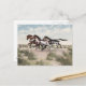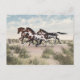 This postcard features an original artwork of three paint horses galloping across a Southwestern desert landscape, created in Vue by digital artist Jayne Wilson.
