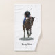 Galloping Thoroughbred Horse And Rider, Hand Towel. Digital Art. Spirited Thoroughbred and his rider in morning workout. Show how proud you are of the horse work you do. Transparent background. Fully customisable; make it your own. Edit the wording to your liking, or remove the text entirely.