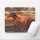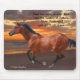 Photograph of a Thoroughbred horse galloping near the ocean at sunrise with a poem, printed on a Mousepad.