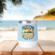 Retro style vignette features waterfront of Galveston Beach, TX. Available on a variety of drinkware, home decor and more.