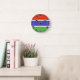 The clock did not take as long to arrive as I thought it might and was extremely well packaged. I didn't do the measurements so I didn't realize it is a little smaller than the average clock but that does not matter (just make sure you check if that's important to you).It is really nifty! It seems very solid and well made not flimsy at all. It has been going well and has kept good time in its few weeks on my wall. Nice product. Gets noticed too! Nicer in real life than the picture but true to the picture