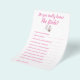 This game was fun and easy to play! Best part was that you can customize the questions based on the bride! Even thought the colors were black and white, it is clean, crisp and very readable.