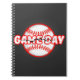 A dynamic sports-themed graphic featuring a white baseball with red stitching against a solid black background. The text "GAME DAY" is prominently displayed in a bold white font with a glowing red border. A stylized black crack effect runs through both the text and the ball, creating a powerful, high-intensity aesthetic perfect for team spirit or game-day promotion.