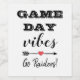 A fabulous popular typographic text "Game Day Vibes" with an arrow and a red heart. Edit the text in the text box that states "Go Raiders" with your team name or personal name or delete the text in the text box for no text.