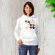 Like croquet then this design is for you. It has all the gear you need for a game of croquet. The balls, the mallet, the goal and the flags. A full croquet set. This game of croquet design looks great on this womens hoodie. Perfect for yourself or as a gift