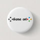 This button has the Game On! logo featuring the buttons of a controller on either side of the text.