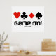 Showcase your wry bridge/duplicate bridge player side with this poster featuring the four card suits along with the following words of encouragement: "Game On!"  Great poster for any bridge/duplicate bridge club!
