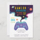 Challenge and invite your party guests to come and join the birthday boy or girl at a video game birthday party. Bright and cool video game theme birthday party invitation. The design features a colourful purple and teal video game controller with the top of the invitation depicting a virtual game space that included stars planets and other references to a virtual video game concept. Customise with name, age, date, time, location, and rsvp details. This is a fun invitation for anyone wanting to have a video game theme birthday. All illustrations are created and designed by Moodthology Papery.