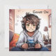 Personalised boy's birthday party invitation. Anime boy playing video games graphics. Cute video gaming themed birthday party.
