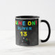 Game On Video Controller Gaming Birthday Mug. Gaming controller, custom name and age on a dark pattern.