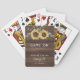 Floral Script Eucalyptus Sunflower wedding favours playing cards. Featuring a beautiful rustic floral bouquet, with modern simple typography on a wood effect background. TIP: Matching wedding suite cards like RSVP, wedding programs, banners, tapestry, gift tags, signs, and other wedding keepsakes and goodies are available in the collection featuring this design.