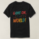 Game On, World " features a bold and vibrant graphic that celebrates the spirit of gaming. At its centre, a stylised globe symbolises global connectivity, surrounded by pixelated game icons, controllers, and energy bursts. The slogan "Game On, World!" is emblazoned across the design in dynamic, futuristic fonts with a glowing neon effect, giving a nod to retro arcade vibes. The colour palette includes electric blues, neon greens, and bright purples, capturing the excitement and energy of the gaming universe. Perfect for gamers, it conveys a message of enthusiasm, challenge, and unity in the world of play.