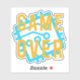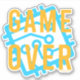 This graphic boldly captures the phrase "GAME OVER" set against a vibrant blue background, intertwined with an abstract, circuit board-inspired design in white. The design's high-contrast, bold yellow letters grab attention, while the intricate circuit lines evoke the essence of digital technology and gaming. This visual interplay between text and circuitry not only appeals to gamers but also creatively symbolises the end of a digital journey or game. This image would be perfect for gaming related content, apparel, or even as a stylish poster for a gaming room.