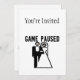 The game doesn't ever have to be over, just temporarily paused! Game paused, it won't last forever! Divorce is imminent! Featuring a happy bride and a sad groom.