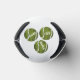 Trio of tennis balls with text overlays reading "Game, Set and Match"
