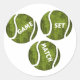 Trio of tennis balls with text overlays reading "Game, Set and Match"
