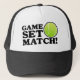 Let everyone know that you play tennis or that tennis is your passion with this retro-inspired design that reads, "Game, Set, Match!" and features a graphic of a tennis ball.
