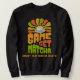 Fun GAME SET MATCHA Fun Latte Drinker sweatshirt with CUSTOMIZABLE TEXT, for drinkers of matcha latte tea who love tennis. The design shows a retro style typography in vibrant colours, with wording that reads GAME SET MATCHA and WORTH PLAYING FOR. This last line is CUSTOMIZABLE so you can PERSONALIZE with your own wording or delete.