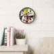 I received this as a birthday gift from my husband to replace a clock that had broken. It was perfect, pictures of my sweet family to see at every hour of the day. The size of the pictures looks nice for the size of the clock and I love looking at it! The only downside is there is no cover for the battery on the back, which makes me nervous having little kids running around the house, but an easy fix with some tape. The printing turned out clear, considering they were all cell phone pictures. Some of them look slightly grainy upon getting close up. But so nice overall!