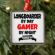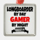 This text design features the trendy phrase "Longboarder by Day Gamer by Night" and is perfect for any longboarder that loves playing computer games or video games.