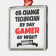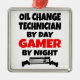 This text design features the phrase "Oil Change Technician by Day Gamer by Night" and is perfect for any oil change technician who loves playing video or computer games.