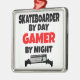 This text design features the trendy phrase "Skateboarder by Day Gamer by Night" and is perfect for any skateboarder who loves playing video or computer games.