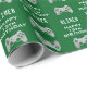 Gamer Video Game Controller Birthday Party Wrapping Paper. Gaming controller on a green background. Add your name and age.