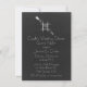 Stylish couple's game night wedding shower invitation done in a trendy chalkboard grey, with custom white text ready to personalise. A white tic tac toe game using hearts, at the top of the invitation, has a white arrow running through it.