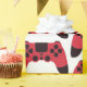 Gamer gift wrapping paper with a pattern of red console gaming controllers. Great for your geeky friend or significant other who loves to play video games.