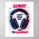 The image features a stylised illustration of a pair of gaming headphones against a white background. The headphones are make in a bold, cartoonish style with vibrant colours, including blue, pink, and black. The headphones are depicted with a microphone attached, and the earcups are large and circular.