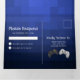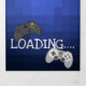 Cool 2 in 1 birthday invitation featuring a blue pixel background, the text "THE GAME IS ON!", two video game controllers, a photo of your child, a party invitation, and a rsvp postcard.